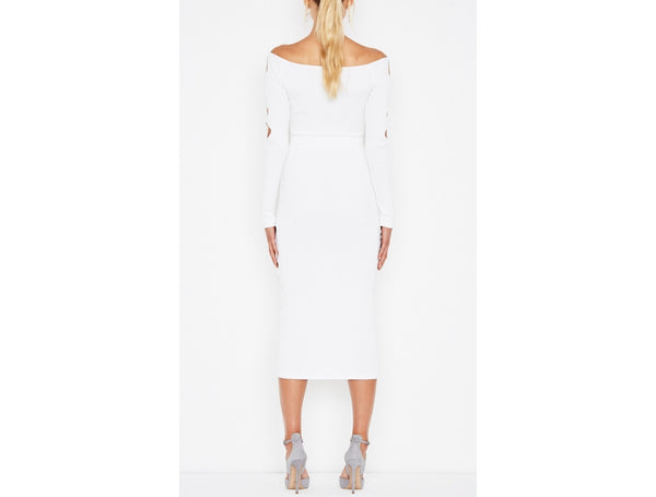A super flattering style, the 7/11 skirt is cut from a flexible ribbed knit material that smooths and sculpts the figure. The fitted midi skirt was designed with an elastic waist for added comfort, and features a scalloping detail on either side. Compliment the piece with a cropped top in a contrasting colour.