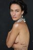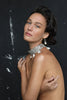 Swarovski chain choker necklace, complimeted by baroque pearls and plated in rhodium.