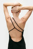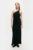 Silk Laundry Slope Dress, made from 100% silk with a glossy sheen. A one-shoulder dress designed with encased elastic straps and a side seam invisible zipper.