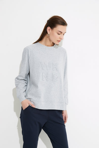 Our much loved Embossed Sweat has been revised in fresh colours for the season ahead. In the same ultra-soft, lightweight fabric that you all love, this sweat is a classic piece that is a versatile addition to your wardrobe featuring raglan sleeves and the letters WKND embossed on the front.