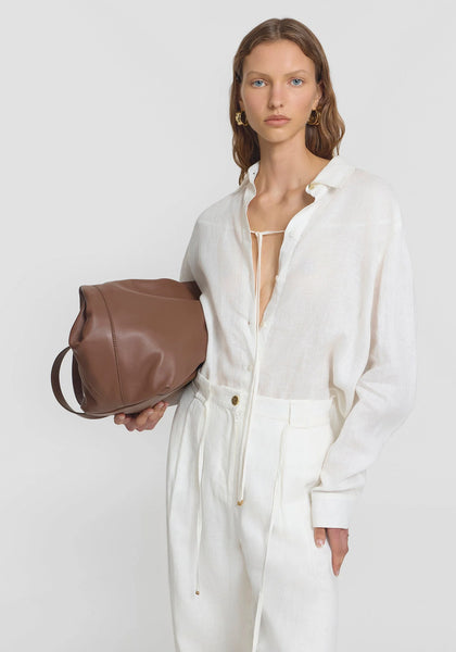 - Tie detail attached internally so shirt can be worn off-shoulder