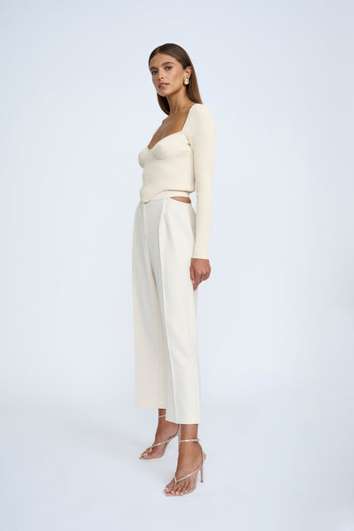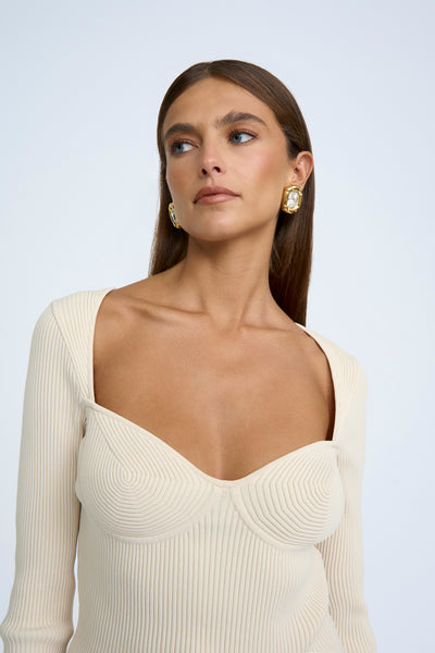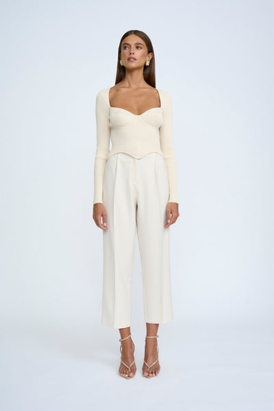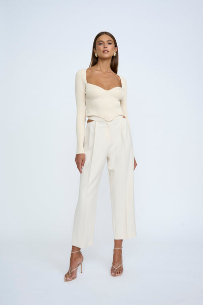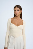 LORETTA SHAPE KNIT TOP- SAND