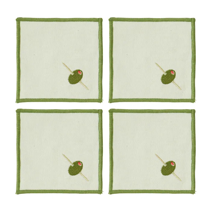 OLIVE S/4 COTTON EMB'D COASTER 10X10CM