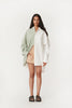 A modern approach to a timeless style, the Angel Shirt features an oversized boyfriend fit with contrasting mint and white panels.