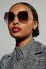 Elevating drama, oversized gold metal D-shape frames encase quality UV protective smoke mono lenses on the Black Diamond sunglasses. Super glam slender metal arms feature the Karen Walker arrow, while adjustable nose pads provide a universal fit.