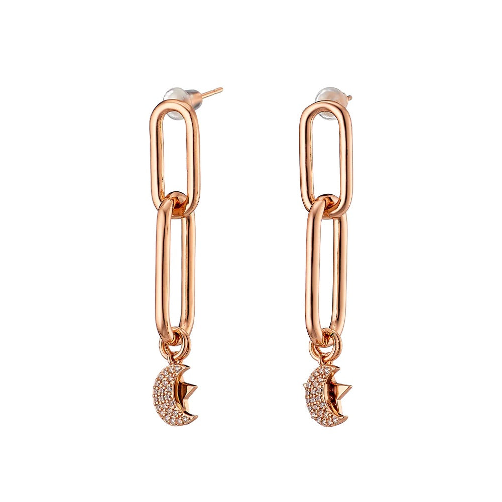 Charming Clip Rose Gold Stud Earrings with white zirconia Moon