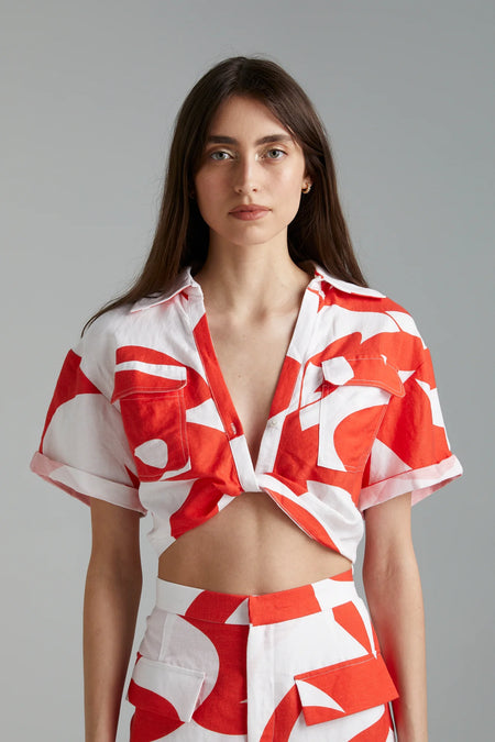 CROPPED LINEN TWIST SHIRT - SAILORS DELIGHT