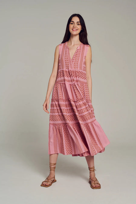 Ella Sleeveless Midi - Camel-Purple/Pink