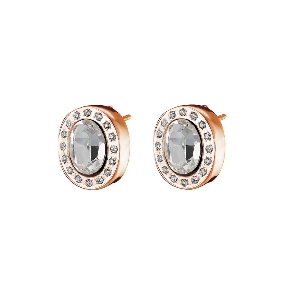 Extravaganza rose gold plated earrings with oval and round white crystals