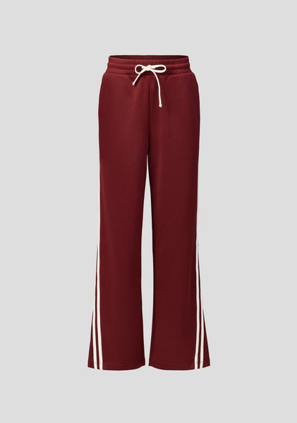 - Contrast ivory double stripe down side seam that curve to front at leg opening