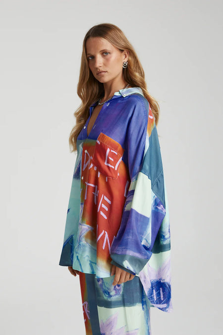 LS OVERSIZED SHIRT - BLUE SUNFLWR