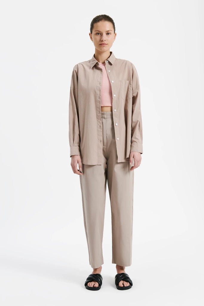 The Naya is our signature poplin shirt made from a breathable cotton that has been washed down to create a soft, lightweight hand feel. Silhouette is relaxed with a drop shoulder and slightly oversized body. Classic shirting features include a front patch pocket, traditional shirt collar and front button opening, and a curved hem shape.