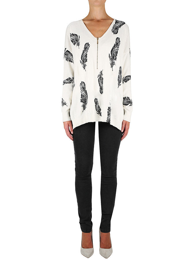 This sweater is cut for a loose fit and features a longer back hem and an elegant front gold zip.