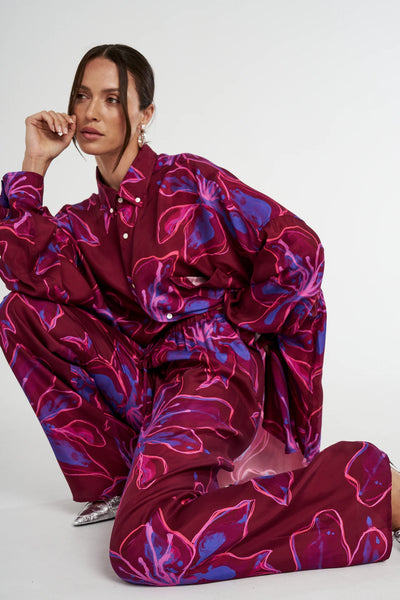 Elevate your style in our Relaxed Drawstring Pant featuring the striking JAM LILY print. A relaxed flowy fit with a wide leg, perfect for casual everyday wear or pair with a heel for an elevated finish.
