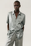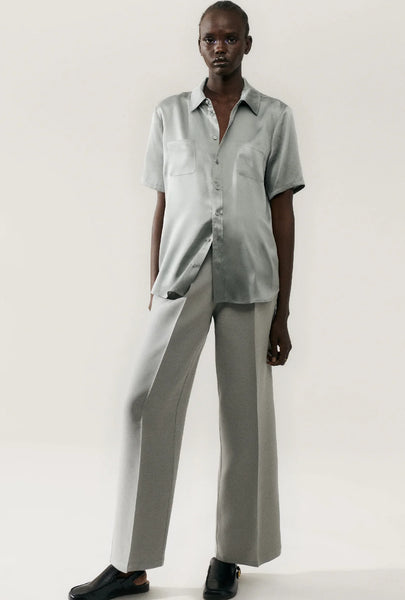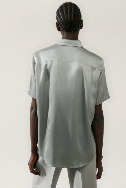 Silk Laundry short sleeve shirt crafted in 100% silk detailed with a button-down front and utility pockets. Designed to echo an original menswear style for a relaxed fit.