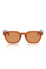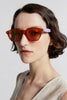A playful Karen Walker take on a classic slim silhouette, the Trillion fuses rectangular shaping with rounded hex details to deliver a distinctive look that is both vintage and modern. Crafted in our crystal persimmon acetate with contrasting opaque lilac arms, these glasses are fitted with coordinating persimmon lenses that underscore the retro sunset mood. The style is completed with a comfortable nose bridge, luxurious paddle shaped arms and stacked gold mini arrow hardware at the temple and on the sides.