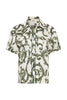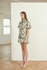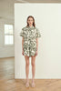 The Zelie Utility Shirt in Valentina, a Kate Ford exclusive hand-drawn print from our Pre-Fall 2022 Collection, Sentinel Soul. A light weight Linen T-shirt featuring a flattering unique boxy shape shirt with contrast binding on the yoke and placket as well as featuring beautiful coconut buttons
